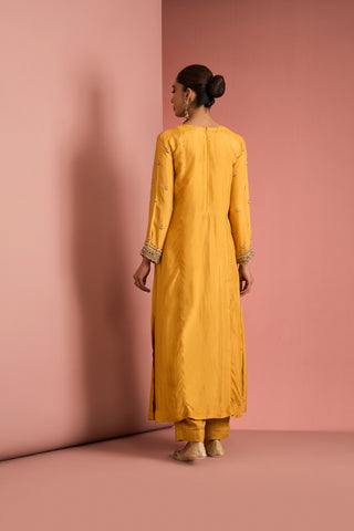 Embellished Mirror Work Round Neck Kurta With Palazzos & Dupatta