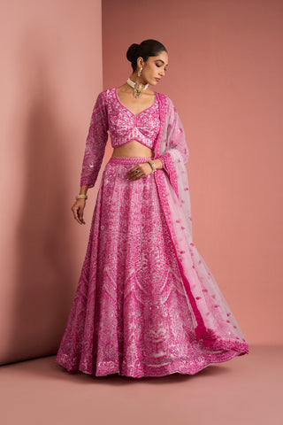 Roohani Rang Net Lehenga Set with Sequins & Beadwork - Baby Pink