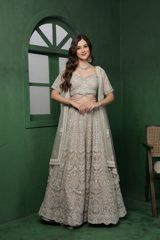 Beads & Stones Embroidered Border Pure Crepe Dhoti Saree