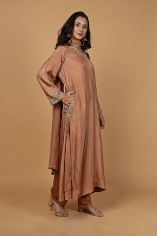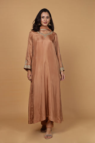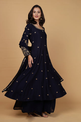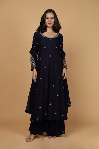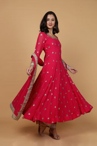 Floral Woven Design Aari Work Georgette Anarkali Kurti With Salwar & Dupatta