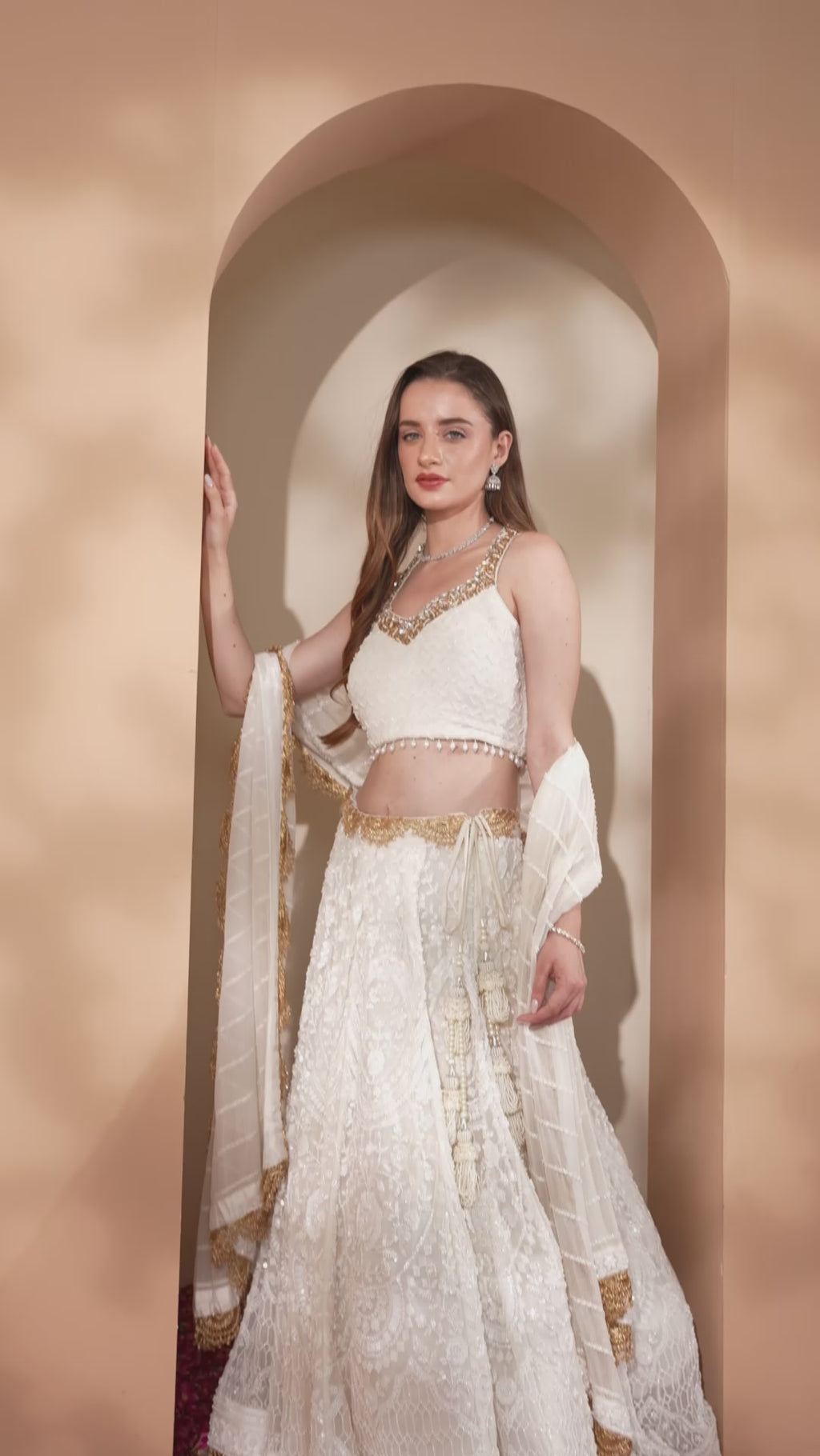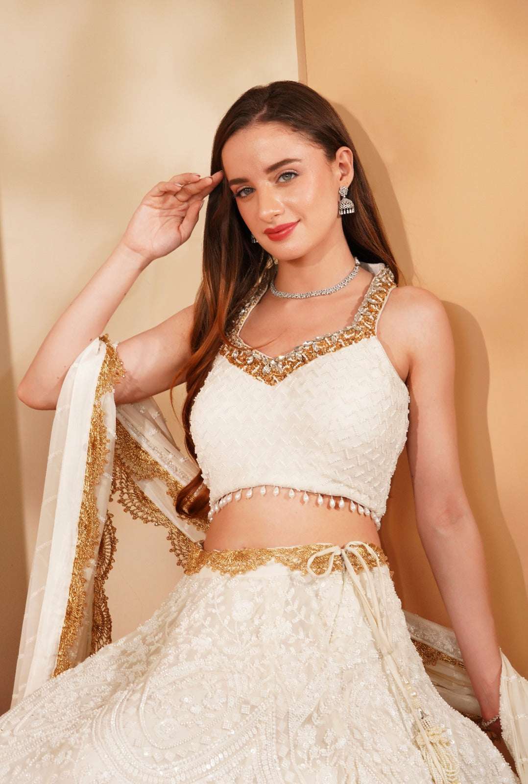 White on White Heavy Embroided Georgette Lehenga Blouse with Dupatta
