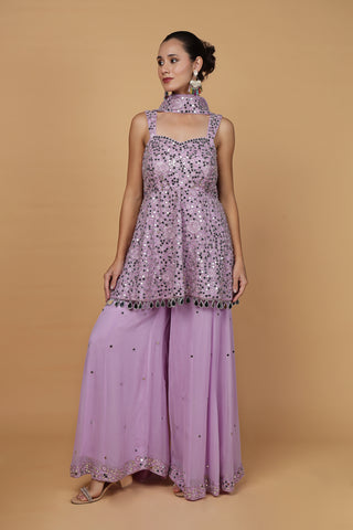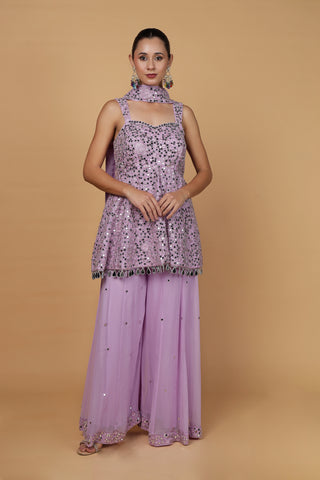 Floral Embroidered Empire Aari Work Kurti with Sharara & With Dupatta